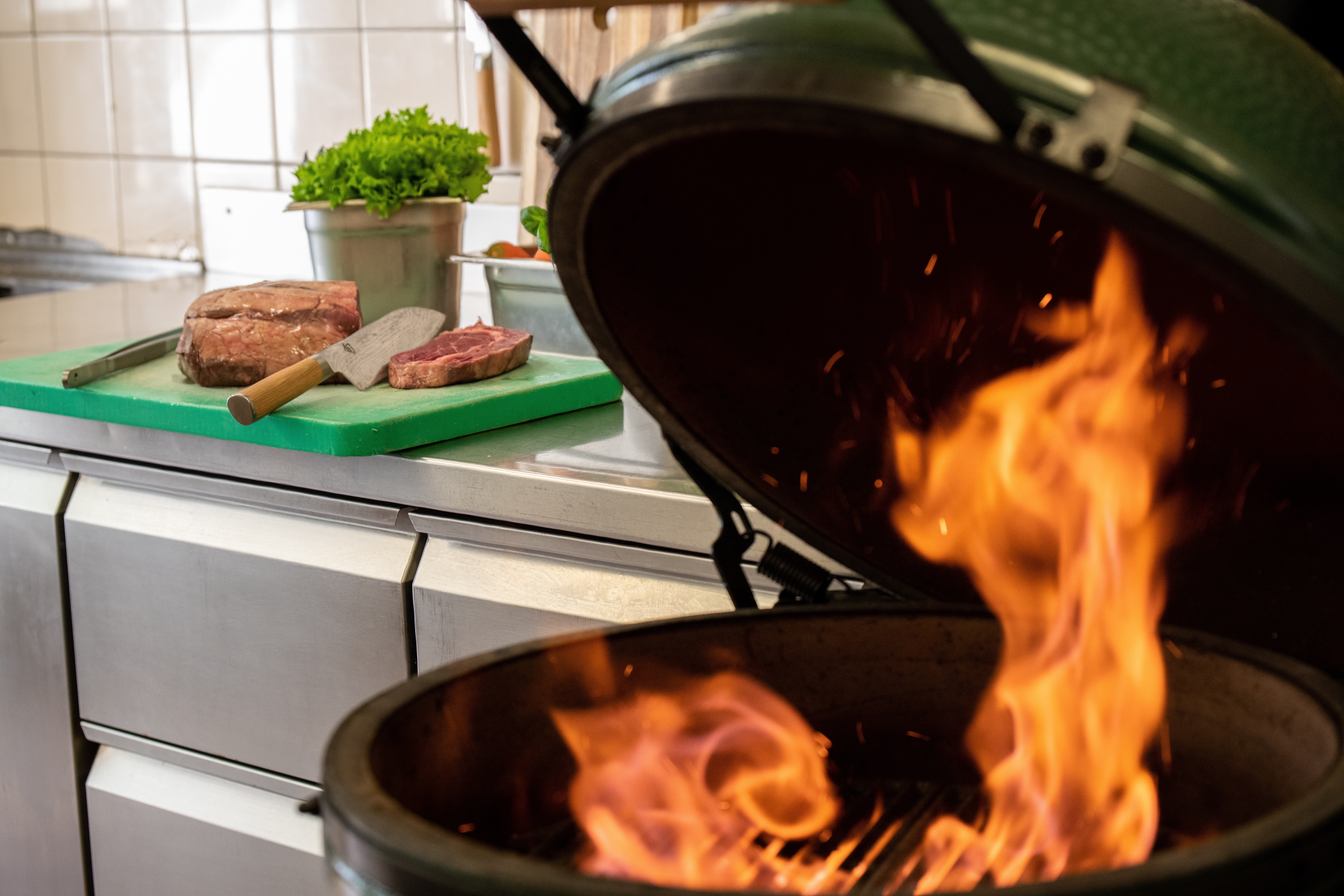Im Schlüssel wird mit dem einzigartigen Big Green Egg grilliert. Der Grill von dem alle reden, befeuert mit Napf Holzkohle aus der Köhlerei Romoos.